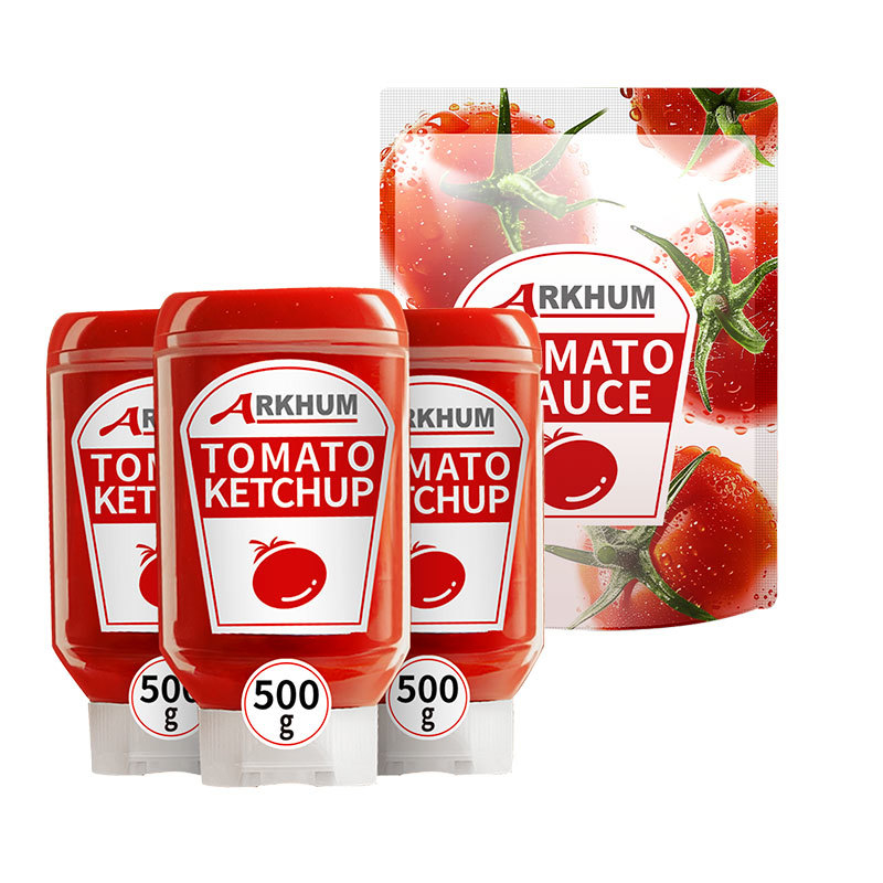 Personnalisé avec votre logo selon les exigences du client, ARKHUM Tomato Ketchup Sauce ajoute une touche personnelle à vos plats.Sa durée de conservation de 2 ans et les exigences de stockage à température ambiante en font un aliment de base pratique et durable.